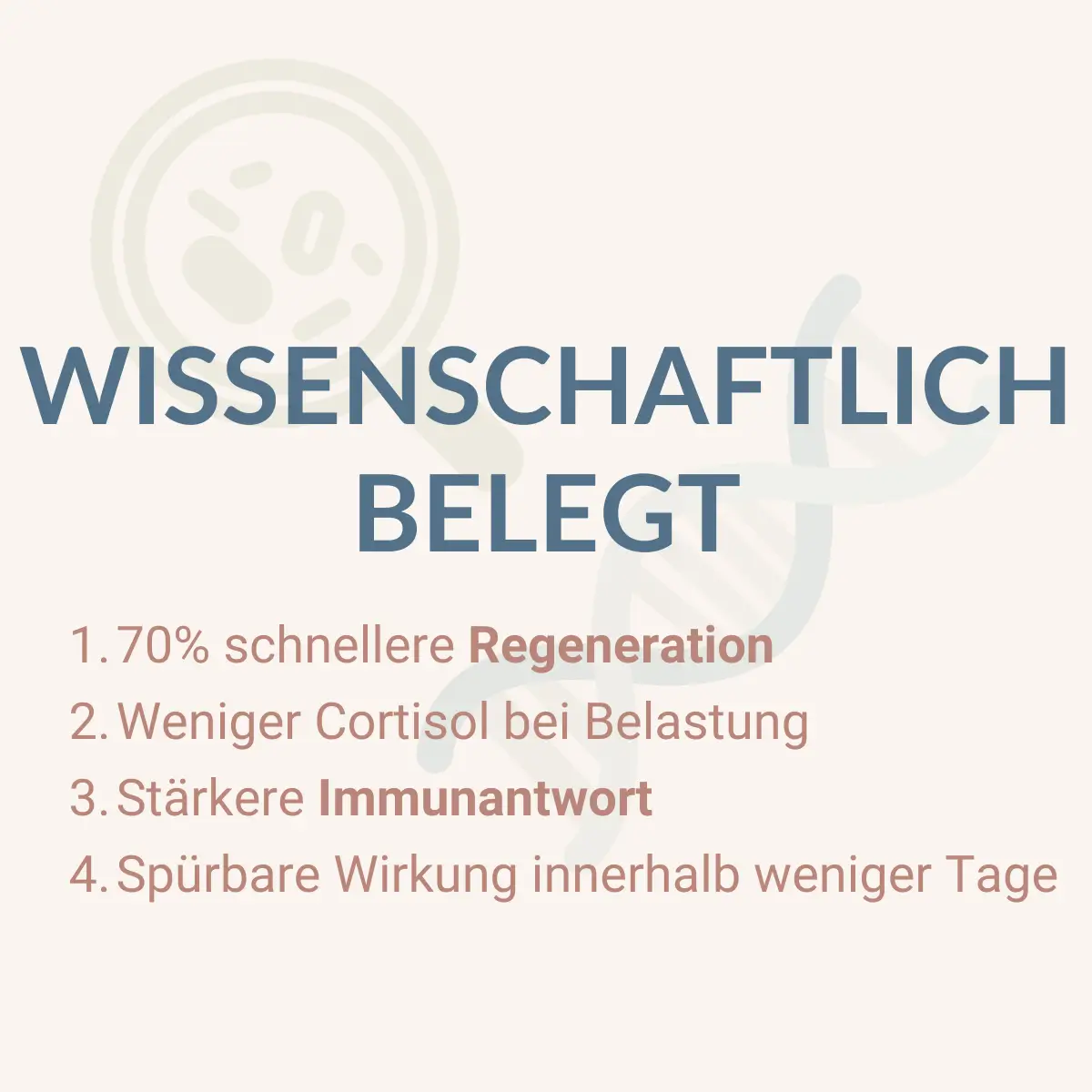 Noticeable differences in energy levels after 1–2 weeks, full effect on regeneration and immune system after 4 weeks.